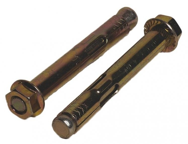 Анкерный болт с гайкой предназначен для монтажа тяжелых элементов (металлоконструкций, кронштейнов, ограждений, консолей, профилей и др.) к твердому основанию, способному выдержать вес конструкции, такому как: бетон, камень, полнотелый кирпич. Представляет собой сложное крепежное изделие, изготовленное из составных частей: шпильки с распором, внешней оболочки и гайки с запрессованной шайбой.