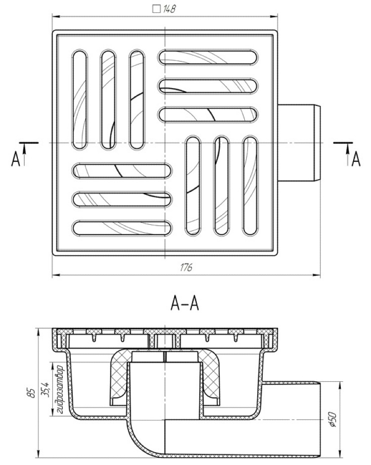 Трап с гидрозатвором. Рекомендуется при частом использовании, допустимая нагрузка до 300кг.