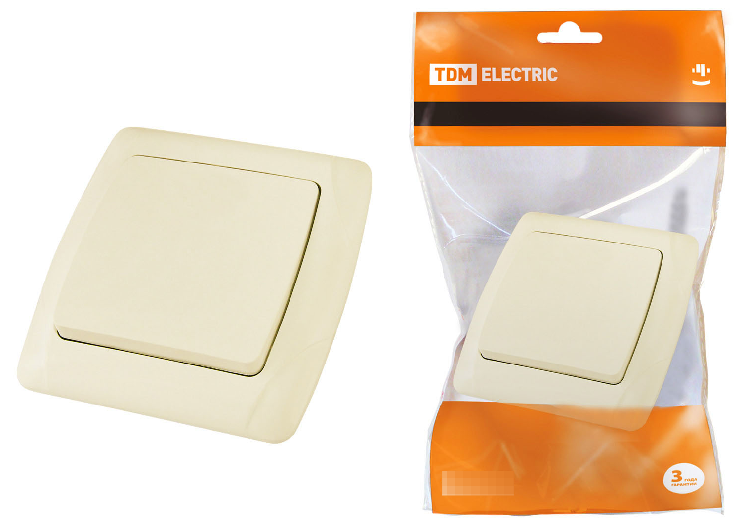 Одноклавишный выключатель TDM Electric Онега представлен в цвете Слоновая кость, он идеально впишется в любой интерьер.