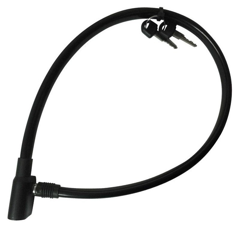 Замок велосипедный представляет собой стальной трос в полимерном чехле. Он достаточно гибкий и устойчивый к перекусыванию. Материал защищает от влаги и царапин, сохраняя внешний вид аксессуара безупречным.