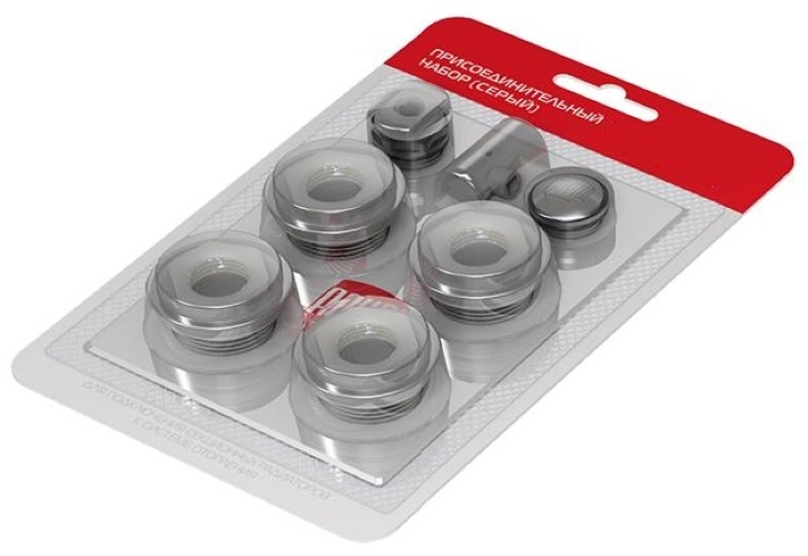 Присоединительный набор Royal Thermo используется для монтажа радиаторов Royal Thermo к трубам диаметром 3/4". Цвет комплектующих - серебристый.