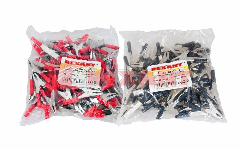 Зажим крокодил REXANT реализуется в индивидуальной упаковке.