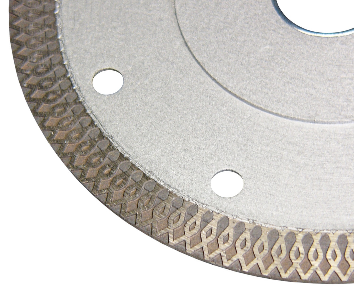 инструмент для резки и шлифовки керамогранита. Благодаря супертонкому исполнению, диск обеспечивает точный и чистый рез, минимизируя образование сколов и трещин. Износостойкое алмазное напыление гарантирует долгий срок службы и высокую производительность.