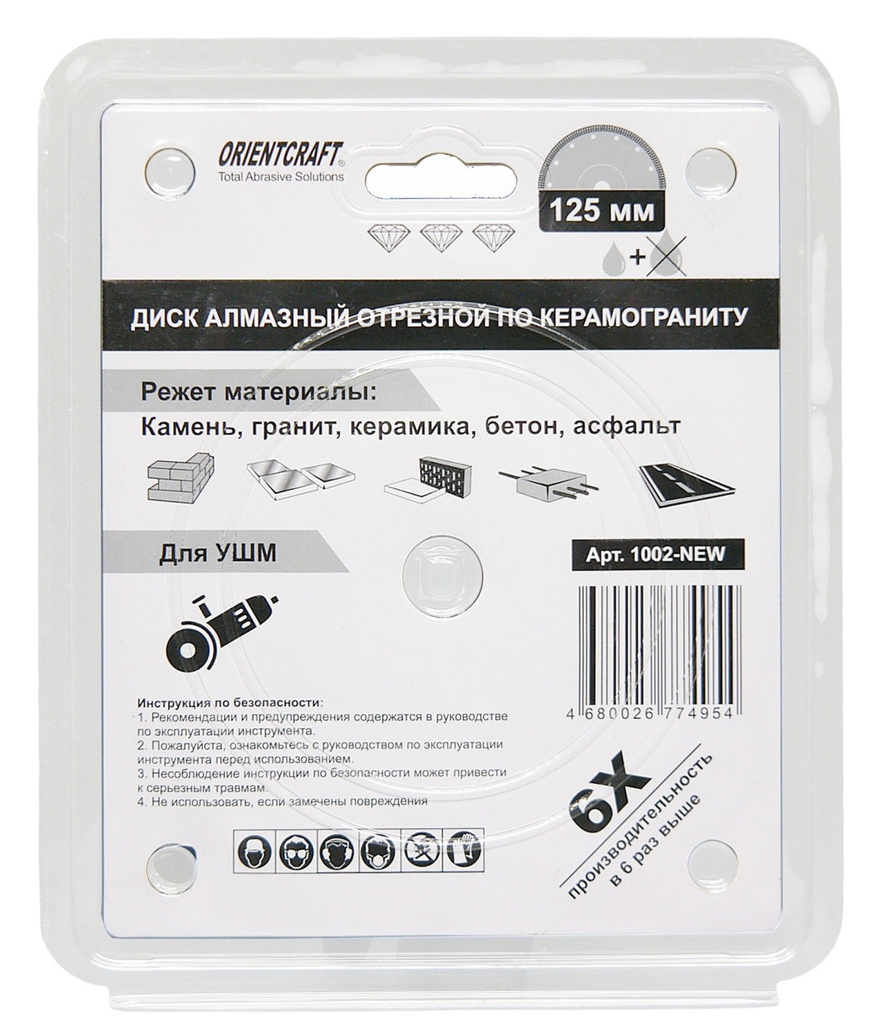 Диск алмазный ORIENTCRAFT / Ориенткрафт по керамограниту, диаметр 125мм, посадочный 22.2мм, рез 1.2мм / расходные материалы и оснастка