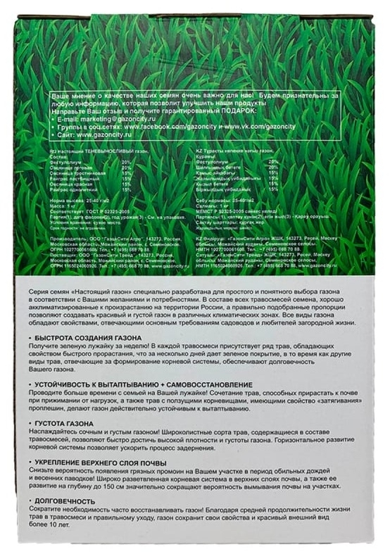 Мечтаете о густом, изумрудном ковре у дома? Семена газонной травы ГазонCity Настоящий.
