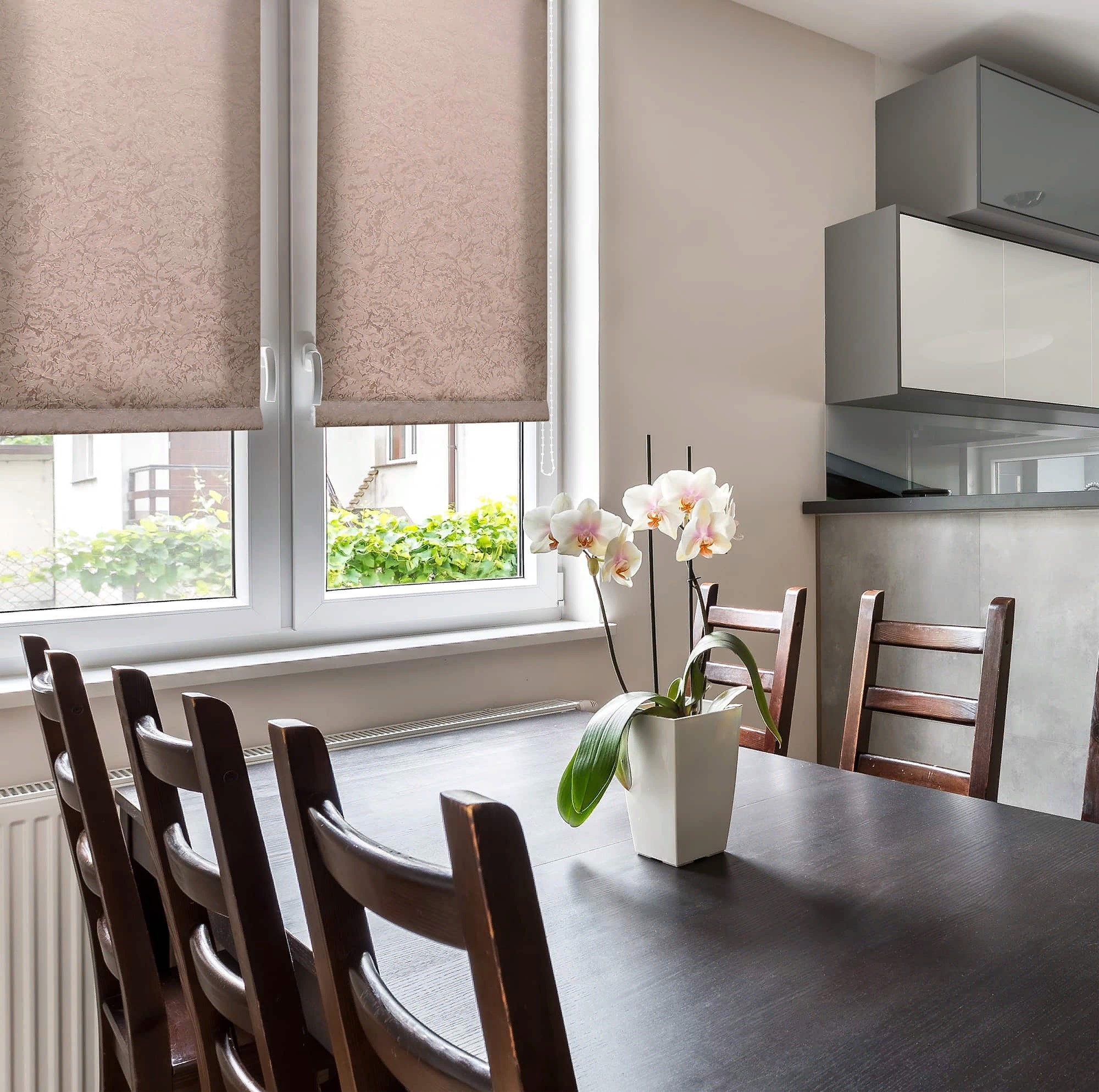 Особые свойства ткани позволяют использовать рулонные шторы во влажных помещениях, таких, как кухня или ванная. Наличие специальных зажимов обеспечивает быстрый и простой монтаж шторы без сверления отверстий в стеклопакете. Существует также возможность стандартного крепления с помощью саморезов. Дополнительно в комплект входит соединитель «защита детей».