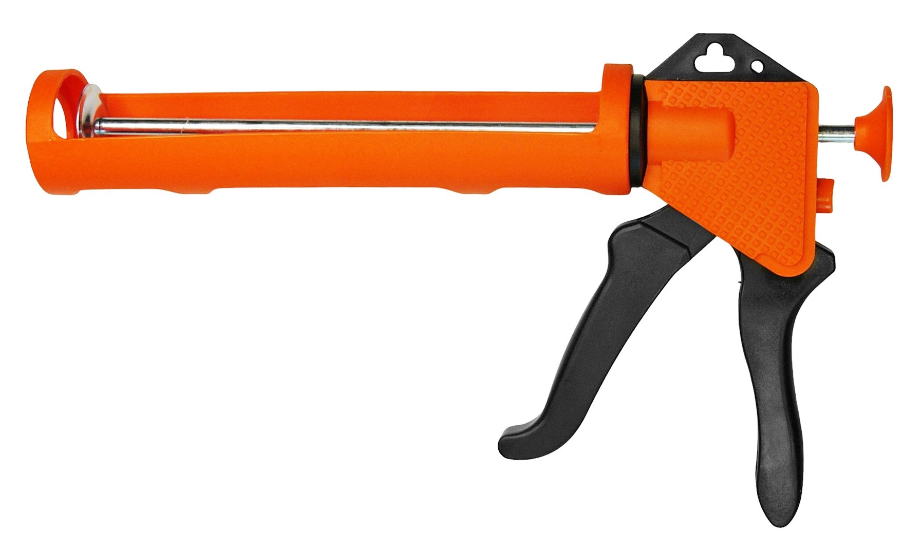 Пистолет для герметика - устройство с простым механизмом и надежной конструкцией, подходящее для нанесения герметиков на основе силикона/акрила. Обеспечивает точечное нанесение состава. Широко применяется в ремонтно-строительных работах для герметизации щелей и отверстий. Чтобы воспользоваться таким пистолетом, нужно установить в него картридж, прижав задний рычаг к ручке и вытянув штырь, и вдавить поршень до упора. Нанесение средства осуществляется путем нажатия на рычаг (спусковой крючок).