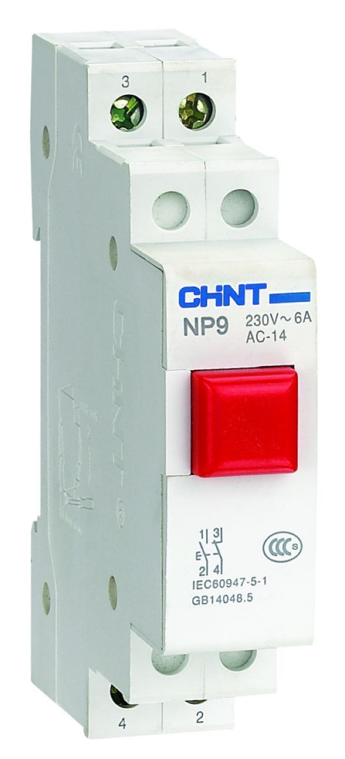 Кнопка включения CHINT NP9-01/2 отличается надежностью, легкостью монтажа за счет упрощенного конструктивного исполнения.