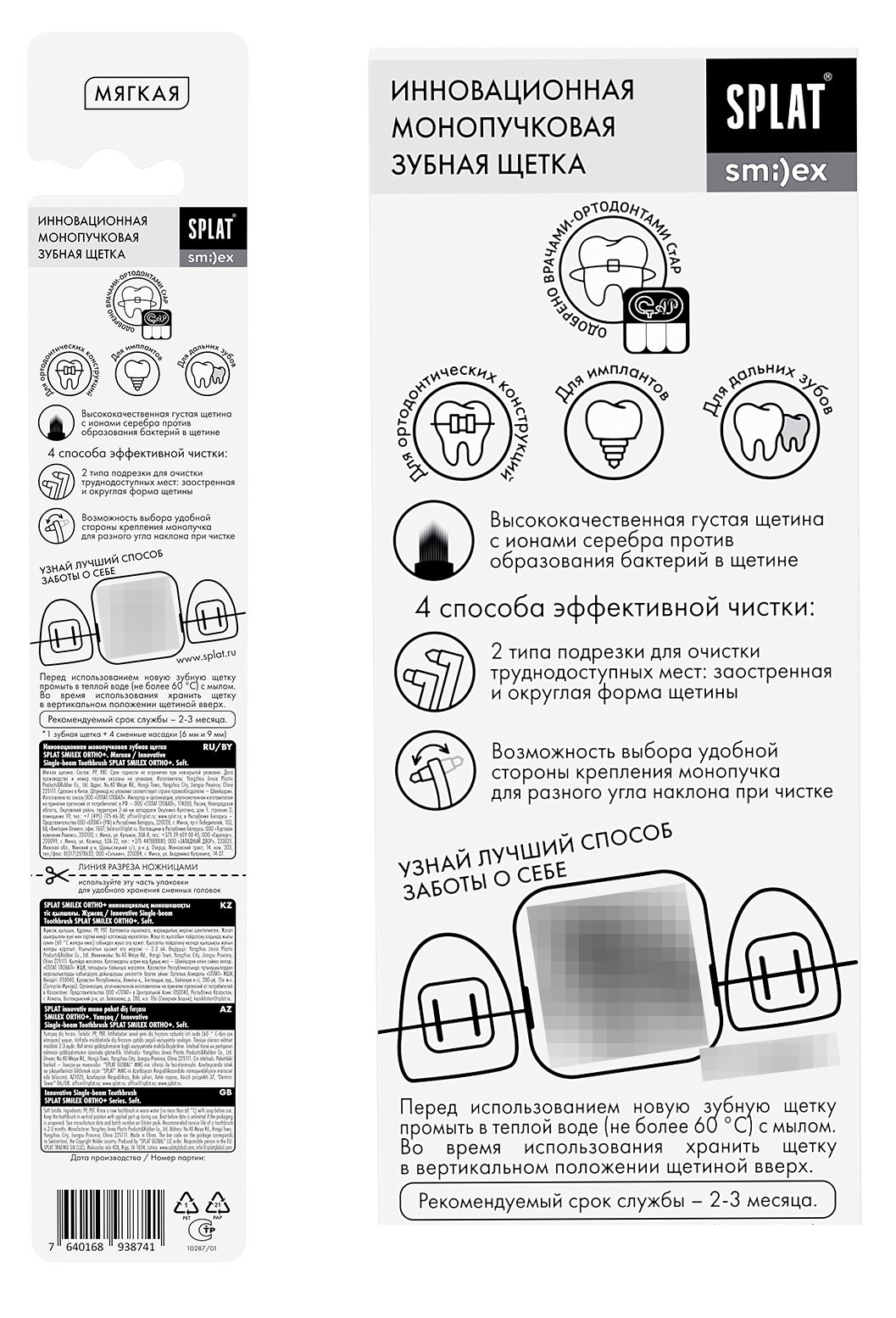 Монопучковая зубная щетка рекомендуется для удаления налёта с труднодоступных участков брекет-системы. А высококачественная густая щетина с ионами серебра справляется с образованием бактерий в щетине.