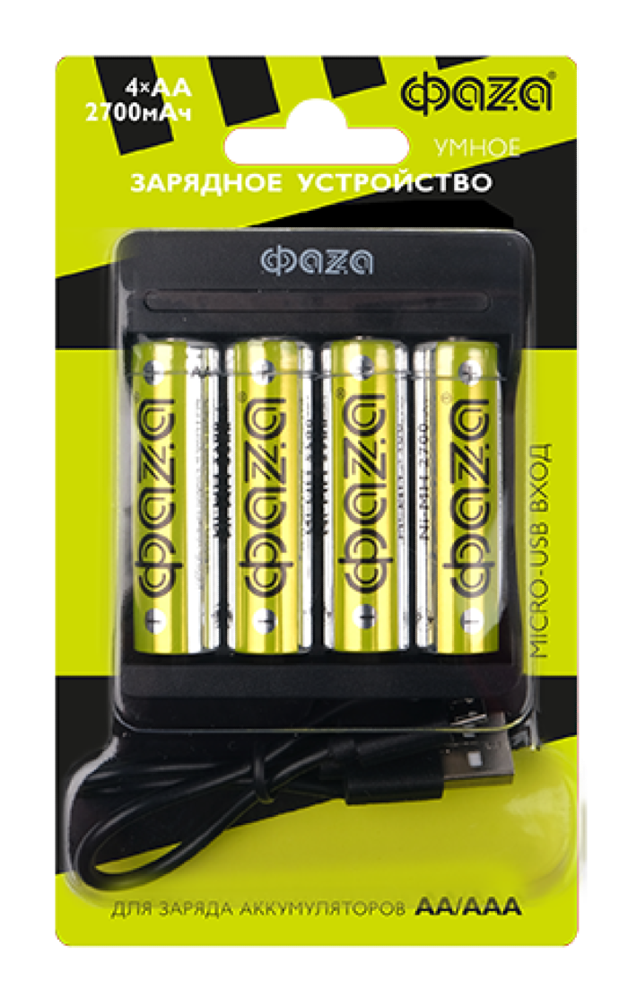 В комплект поставки входят четыре NI-MH аккумулятора АА 2700 мАч, кабель для зарядки Micro-USB — USB и инструкция на русском языке.