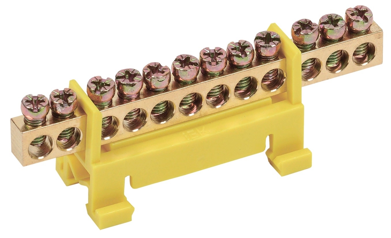 Необходимо подсоединить рабочие и защитные провода в щитовом оборудовании? Шина земля IEK ШНИ-6×9-12-С-Ж поможет решить такую задачу.
