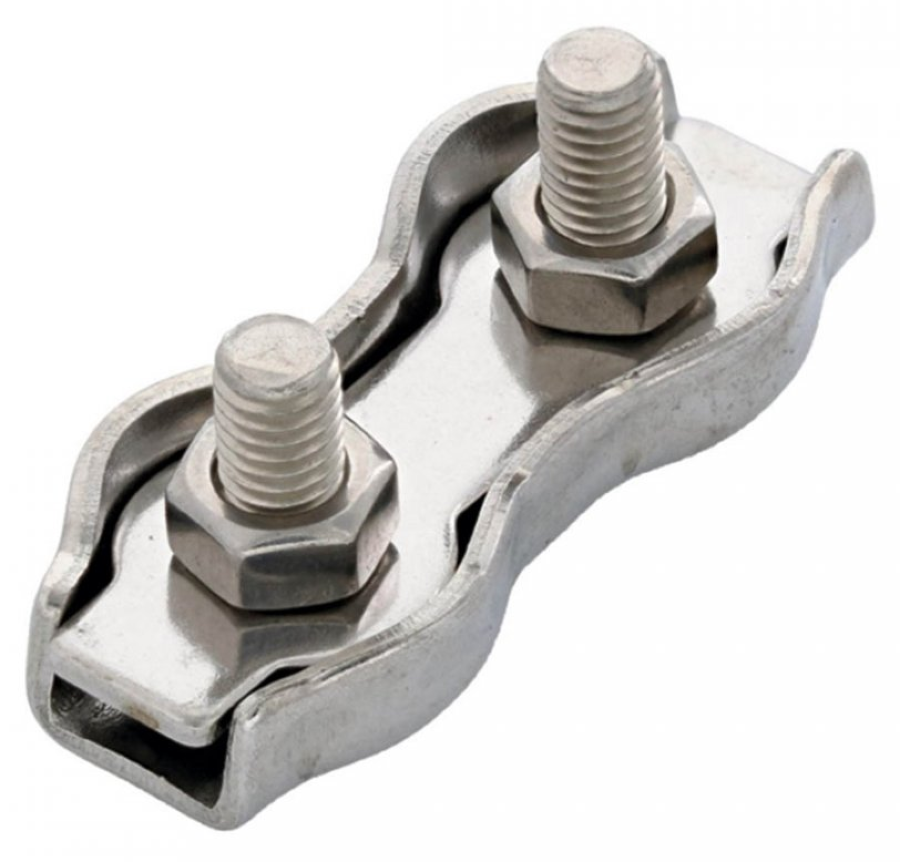 Зажим Duplex для троса 4 мм применяется для удлинения, соединения стальных канатов и тросов, создания петель, крепления к тросам крюков и блоков. Используется при проведении такелажных работ.