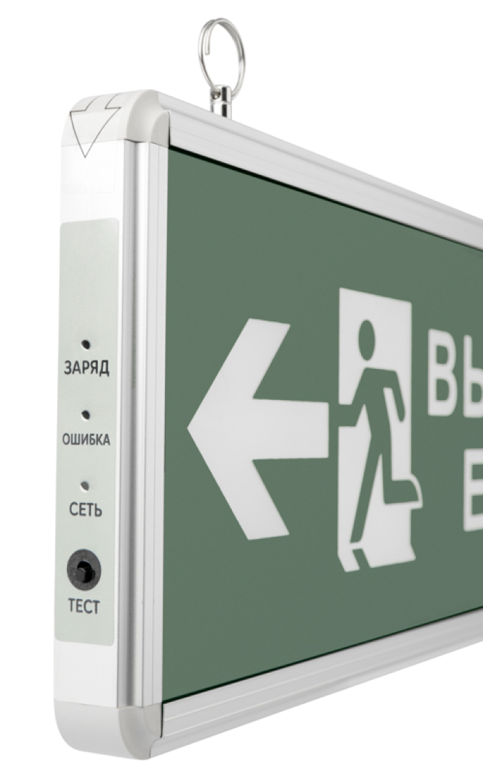 Световые указатели имеют встроенный аккумулятор и сохраняют работоспособность при отсутствии напряжения (230 В) в течение 90 минут.
