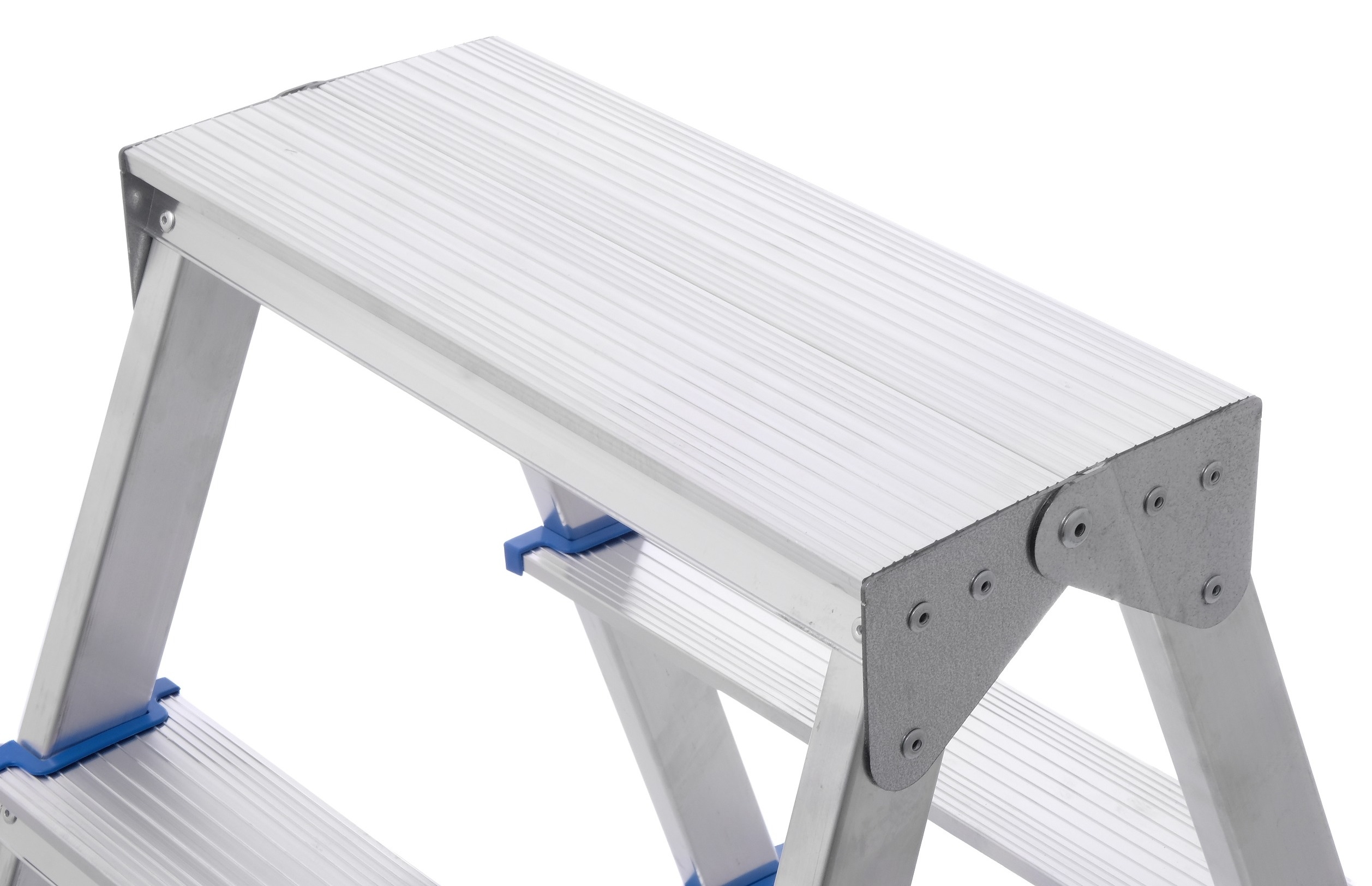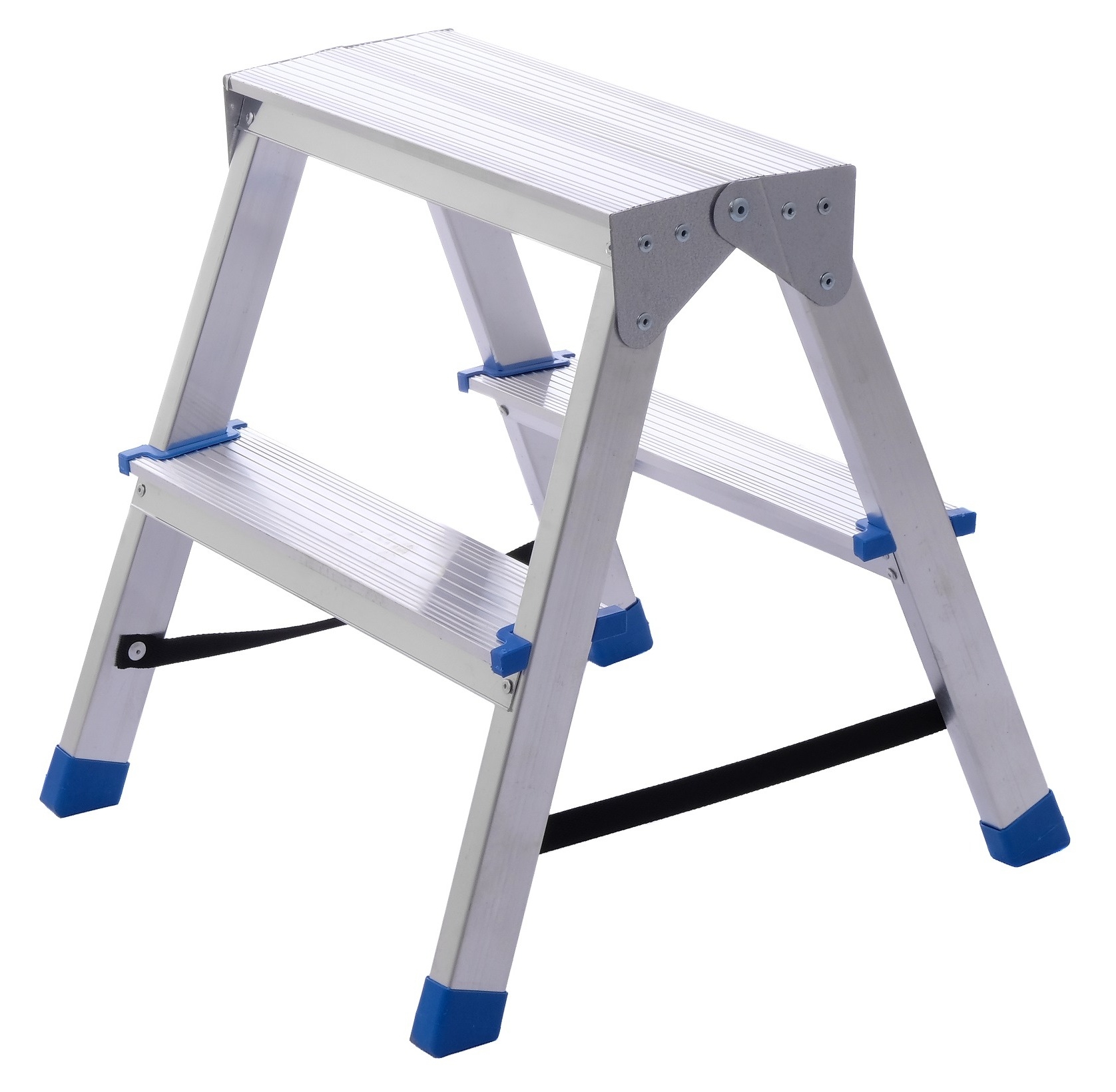 Двухсторонняя стремянка функциональна, ее можно использовать с обеих сторон, благодаря чему не требуется часто перемещать.