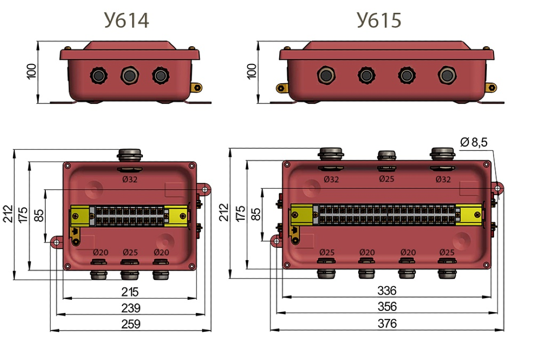 Коробки КЗНС-32, с наборными зажимами применяются для соединения и разветвления вторичных и силовых цепей, выполняемых контрольными и силовыми кабелями с алюминиевыми или медными жилами.