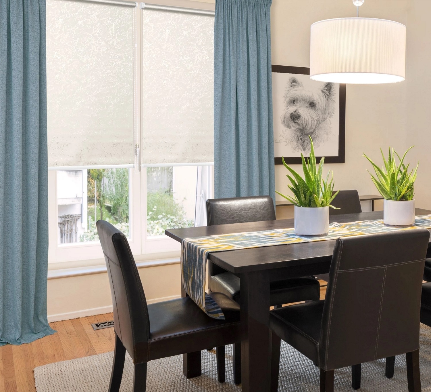 Рулонные шторы — изготовленные из ткани шторы, которые устанавливаются в оконный проём. При желании возможна установка непосредственно на стеклопакет, потолок или стену.