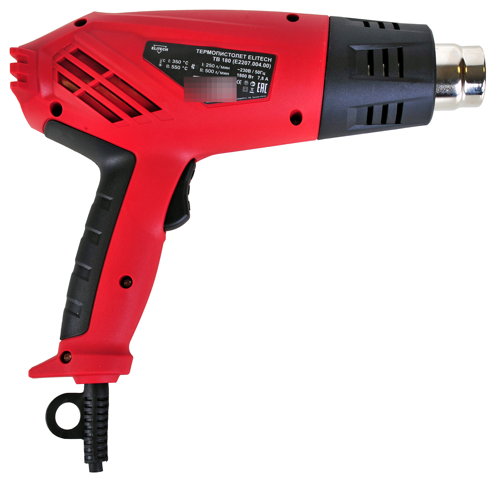 Термопистолет (технический фен) ELITECH ТВ 180 используется при следующих видах работ : снятие лакокрасочных покрытий с деревянных поверхностей, пайка, сварка и формовка пластика, осаживание термоусадочных материалов, ускорение процессов склеивания, пайка мягким припоем и лужение, сушка и размораживание, сварка и резка листовых и рулонных материалов (линолеума и подобных). Инструмент имеет два режима работы : температура 350 градусов при расходе воздуха 250 л/мин и температура 550 градусов при расходе 500 л/мин. Есть защита от перегрева и принудительное охлаждение при выключение. Длина сетевого кабеля 2 метра. Комплектация : понижающее сопло, плоское сопло, стеклозащитное сопло, рефлекторное сопло, паспорт. Поставляется в картонной коробке. Предназначен для: снятия лакокрасочных покрытий с любых поверхностей; пайки и формовки пластика; деформации плексигласа, ПВХ и полистирольных плит; защиты проводов и кабелей термопластичной оболочкой; пайки мягким припоем и лужение; сварки или резки линолеума, рубероида и т. д.; ускорения процессов склеивания; размораживания; сушки и продувания поверхностей; заделки щелей с помощью пластиковой сварочной ленты. два режима работы стандартный размер сопел эргономичный дизайн 4 насадки в комплекте.
