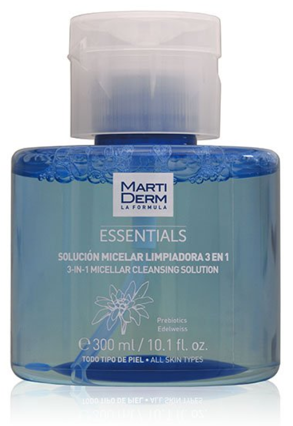 Martiderm Essentials 3 в 1 Мицеллярная вода для лица 300 мл подойдет обладательницам всех типов кожи. Активные частицы косметического средства за одно движение устраняют косметику и загрязнения, обеспечивая бережный уход за лицом.