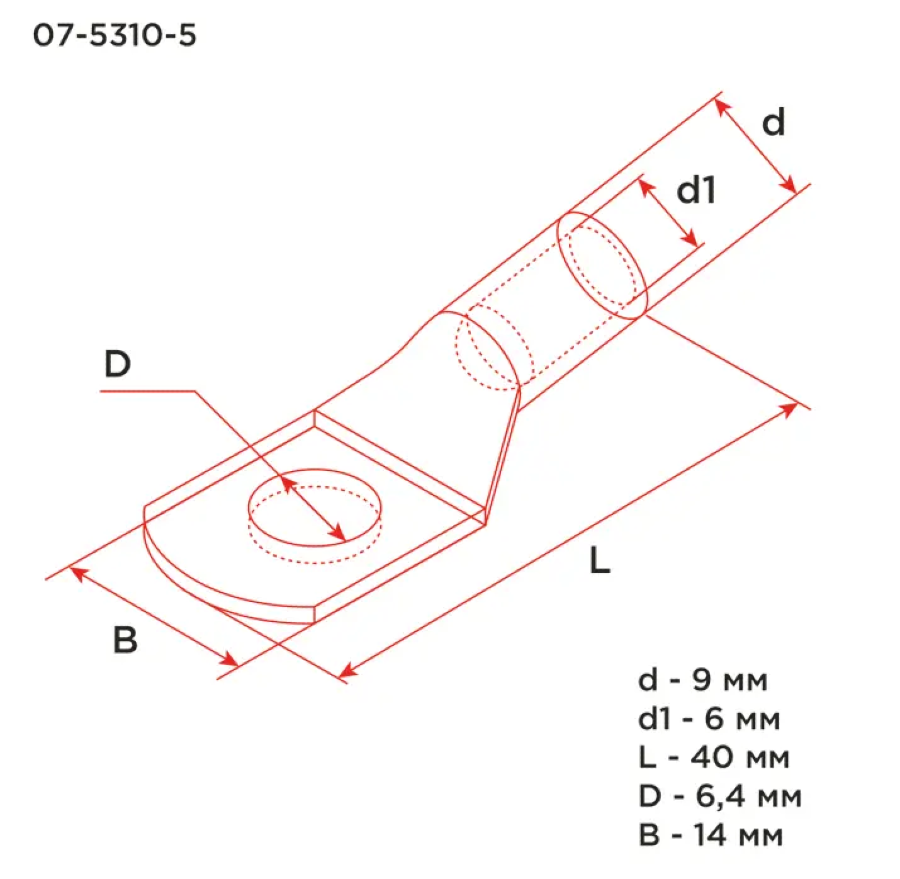 Наконечник для кабеля REXANT ТМЛ 16–6–6 выделяется своими характеристиками: