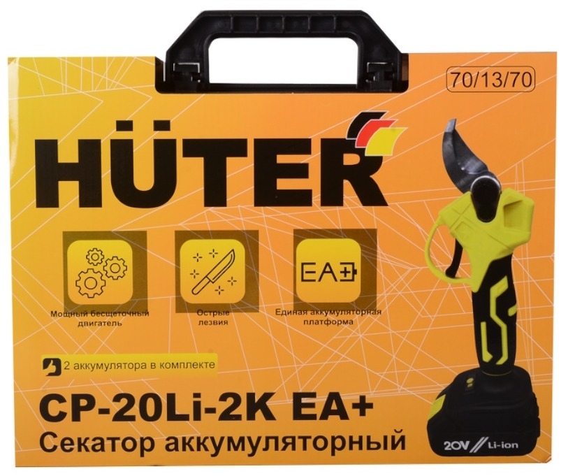 Аккумуляторный секатор Huter CP-20Li EA+ (в комплекте 2 АКБ и ЗУ) 70/13/69 - аккумуляторный секатор для обрезки сучьев и ветвей, диаметр которых не превышает 30 мм (в случае, мягкой древесины) и 25 мм (в случае, твёрдой древесины).