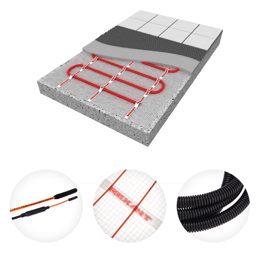 В комплект входят: нагревательный мат шириной 0,5 м и гофротрубка для укладки термодатчика.