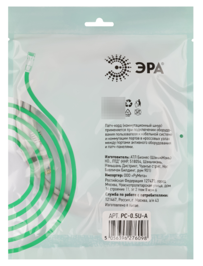Коммутационный шнур патч-корд реализуется в индивидуальной упаковке.