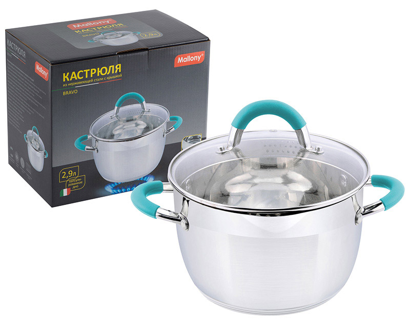 Кастрюля Mallony BRAVO объем 2.9 л из нержавеющей стали с крышкой из жаропрочного стекла размер 005429 предназначена для приготовления еды. Благодаря равномерному распределению температуры блюда хорошо прогреваются, что ускоряет готовку. Ручки изделия не нагреваются, что снижает вероятность обжечься. Кастрюля легко моется, поэтому не требует сложного ухода.