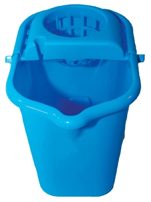 Ведро с отжимом предназначено для влажной уборки помещений. Удобная, прочно закреплённая на ведро отжимная конструкция позволить просто и быстро отжать верёвочную и вискозную МОП швабры любого размера от Mini до Мaxi. Кроме того, со снятым отжимом изделие прекрасно подходит для популярных сейчас швабр из микрофибры. Цвет голубой.
