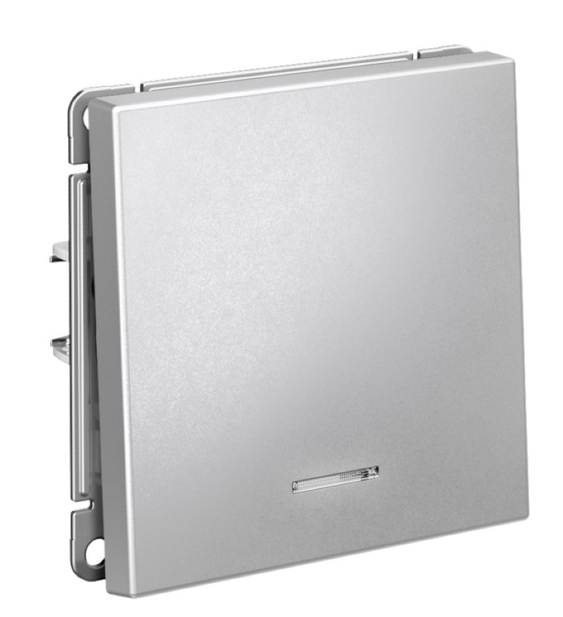 Одноклавишный выключатель Systeme Electric представлен в цвете Алюминий, он идеально впишется в любой интерьер.