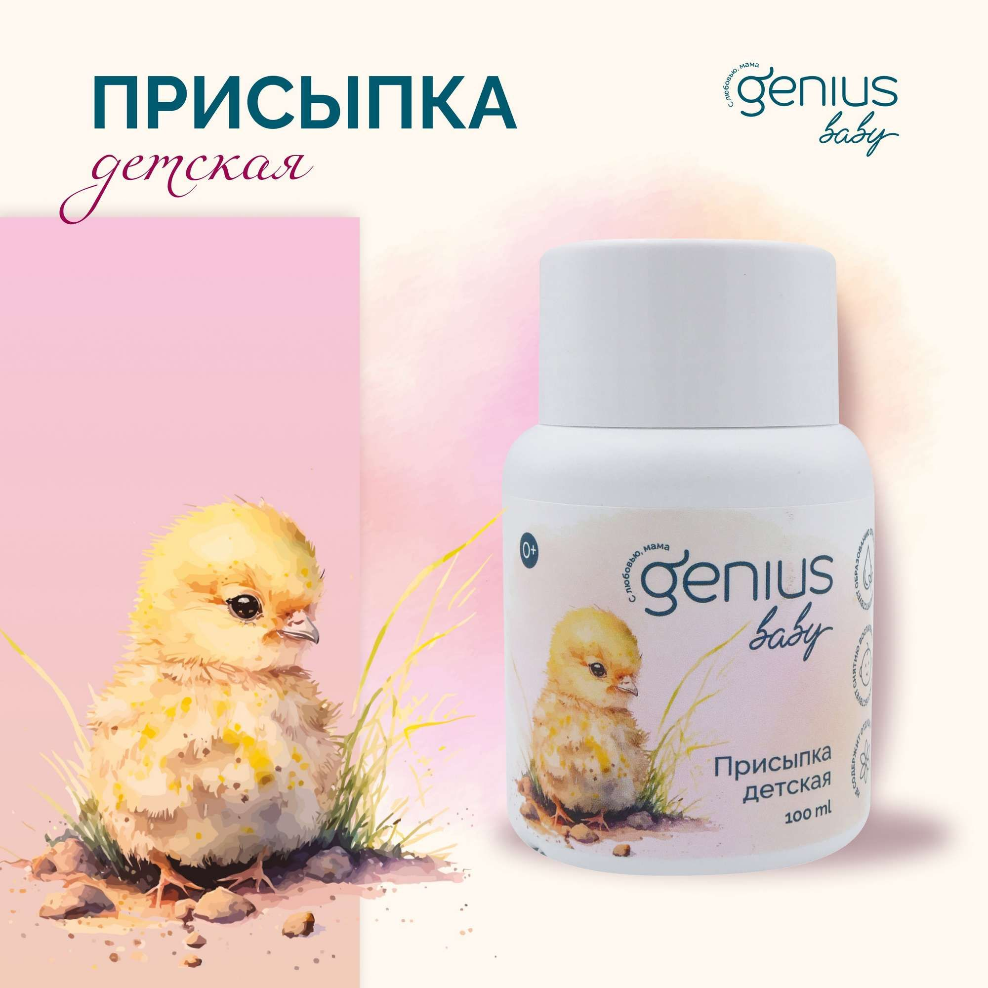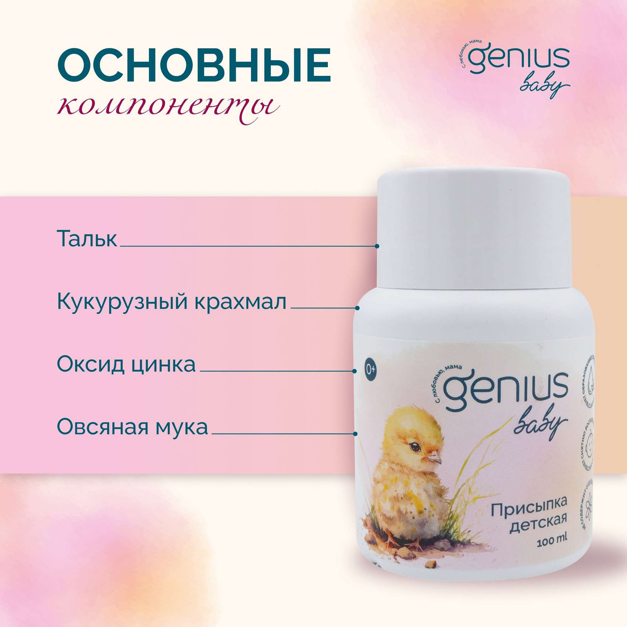 Детская присыпка Genius Baby предназначена для ухода за кожей малышей с рождения. Это нежное средство разработано с учетом всех особенностей обменных процессов в организме ребенка и подходит даже для ухода за очень чувствительной кожей.