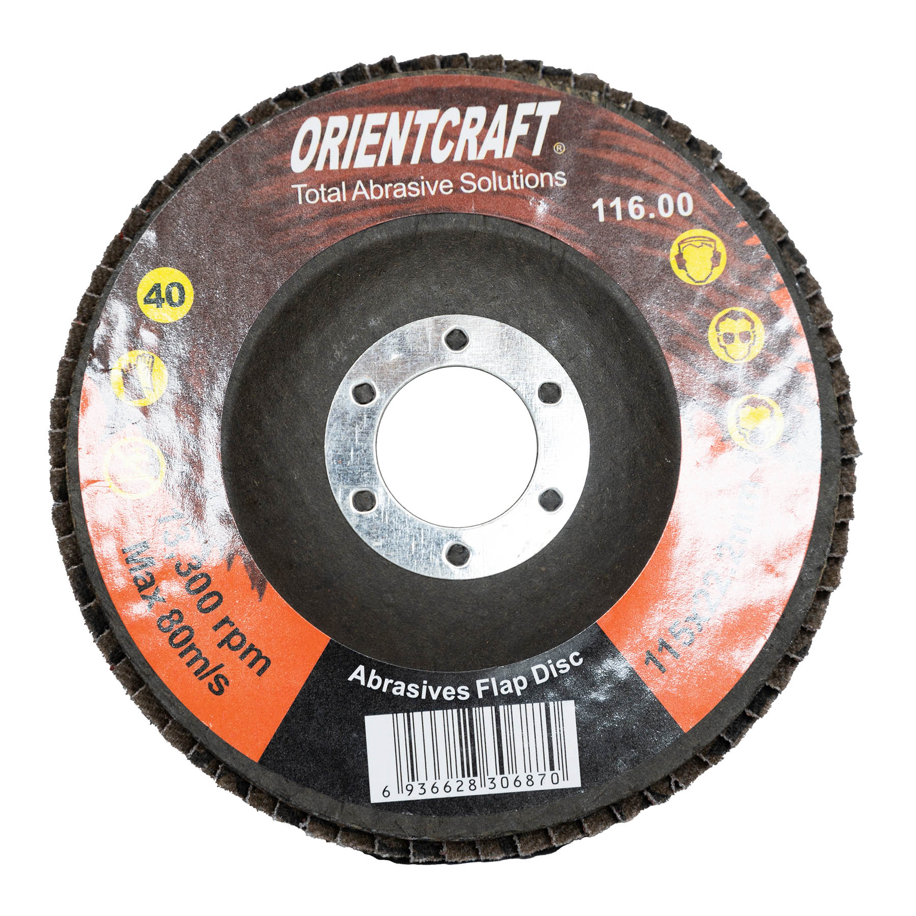 Круг лепестковый торцевой ORIENTCRAFT / Ориенткрафт шлифовальный, оксид алюминия, Р40, посадочный диаметр 22мм, 115мм / оснастка