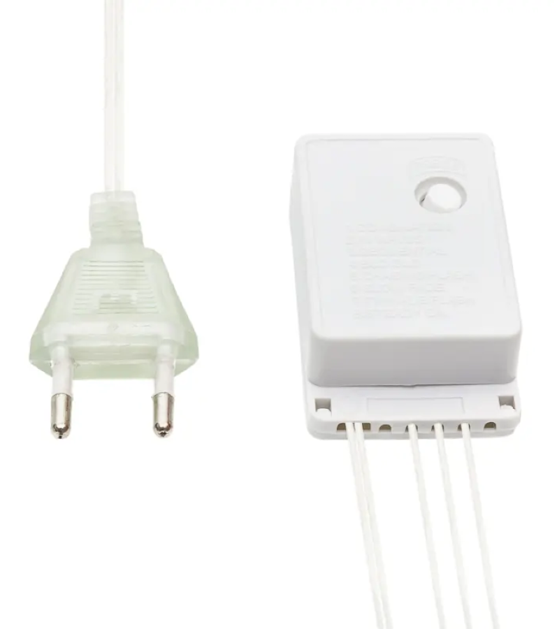 Гирлянда светится белым цветом, управляется контроллером с 8 режимами и прекрасно подходит для оформления новогодней ели и других интерьерных объектов.