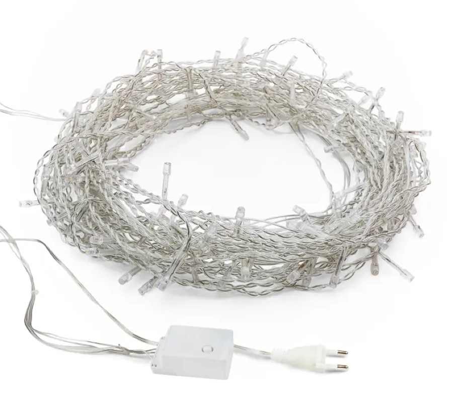 Гирлянда «Твинкл» длиной 20 метров представляет собой шнур в прозрачной изоляционной оболочке из ПВХ, на котором находятся 160 светодиодов.