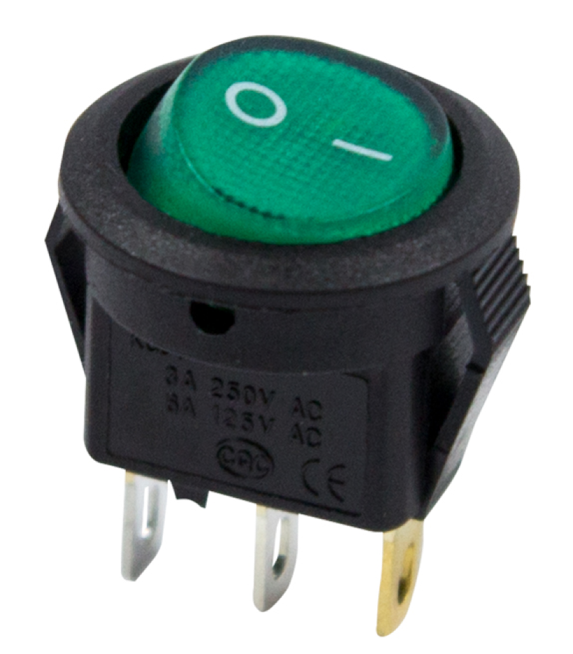Круглый клавишный переключатель ON-OFF предназначен для коммутации электрических цепей. Используется для включения и выключения различного электрооборудования: сетевых фильтров и удлинителей, звукового оборудования, электроустановок на производстве и в автомобиле.