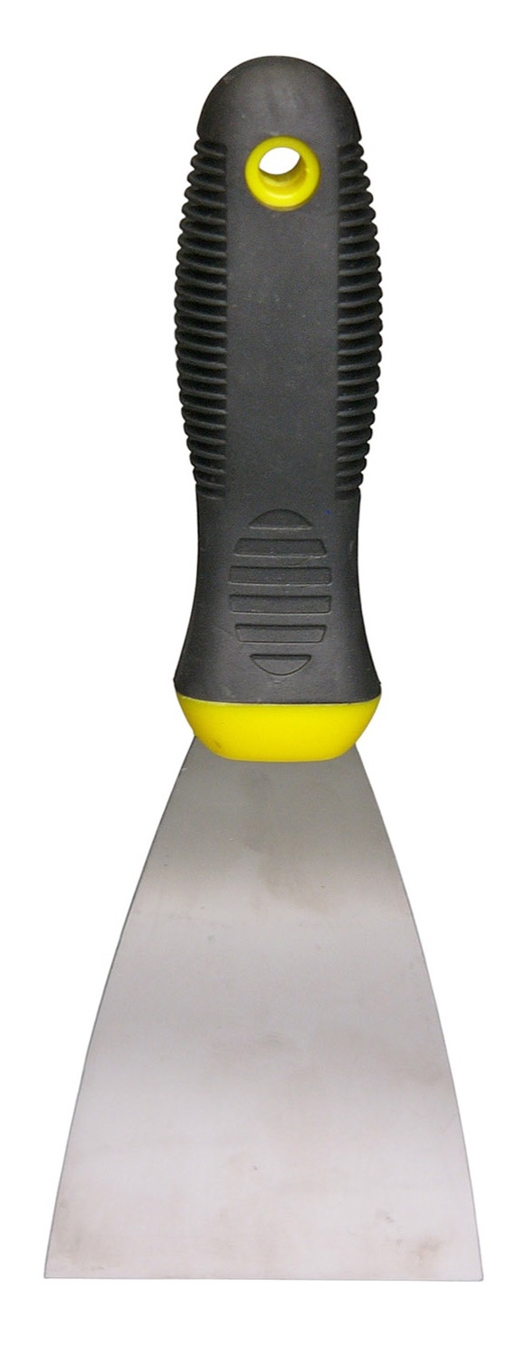 Прорезиненная рукоять обеспечивает надежный охват. Инструмент не выскальзывает во время работы. Лезвие из нержавеющей стали продлевает срок службы шпателя.