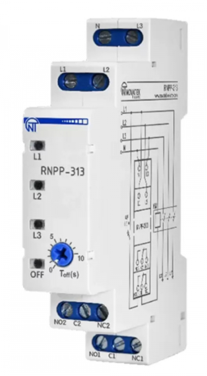 Реле напряжения, перекоса и последовательности фаз РНПП-313 предназначено для отключения нагрузки 400 В 50 Гц при: