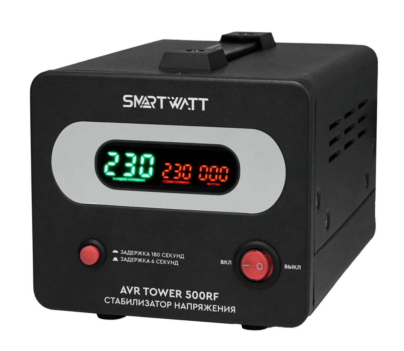 Стабилизатор напряжения SMARTWATT AVR TOWER 500RF выполнен в металлическом корпусе.