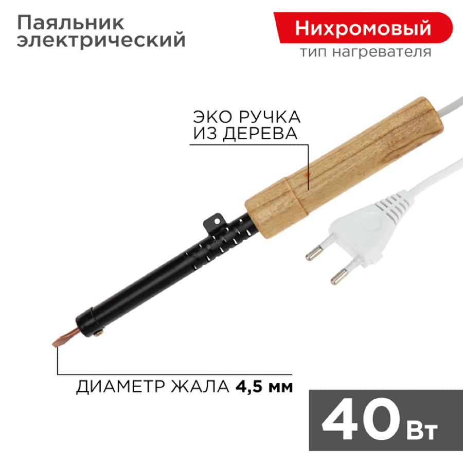 Паяльник с деревянной ручкой серии ЭПСН мощностью 40Вт REXANT предназначен для ручного монтажа/демонтажа электронных компонентов и других мелких деталей. Подходит как для любительского, так и для профессионального использования.