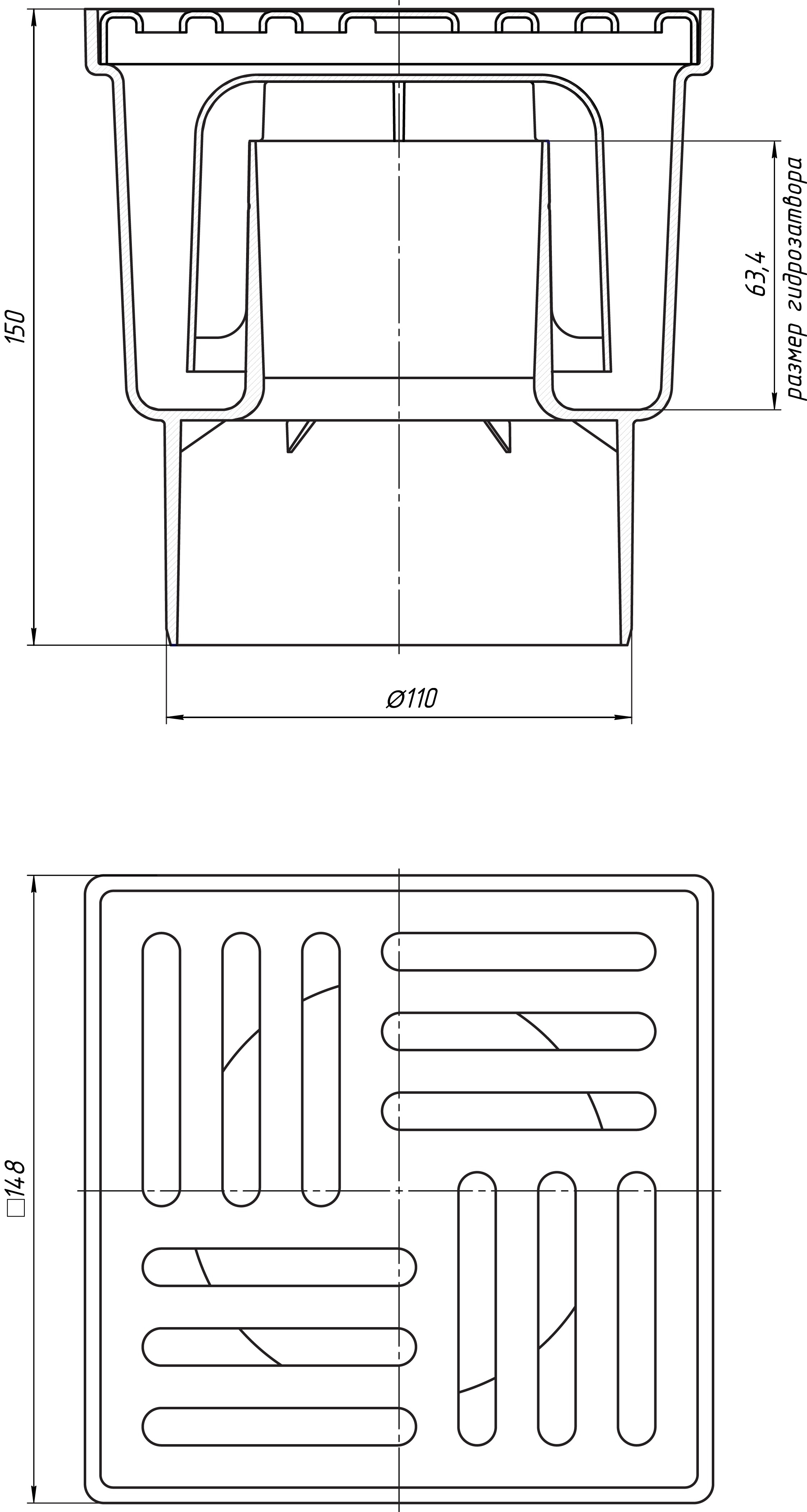 Пропускная способность — 1.4 л/c (при уровне воды над уровнем решетки 20 мм).