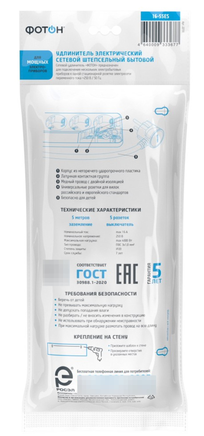 Бытовой удлинитель Фотон 16-55ЕS станет настоящим помощником в вашем доме.