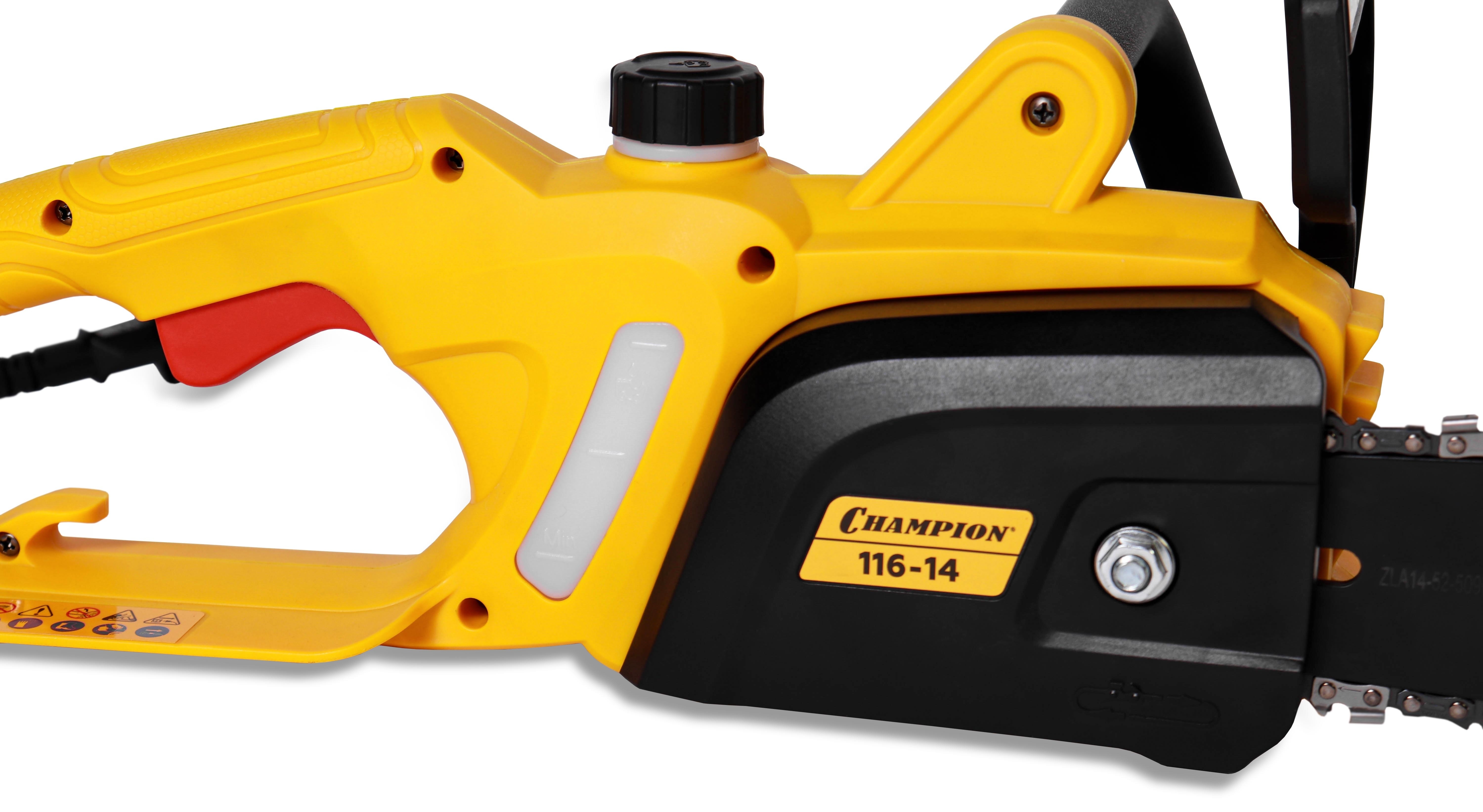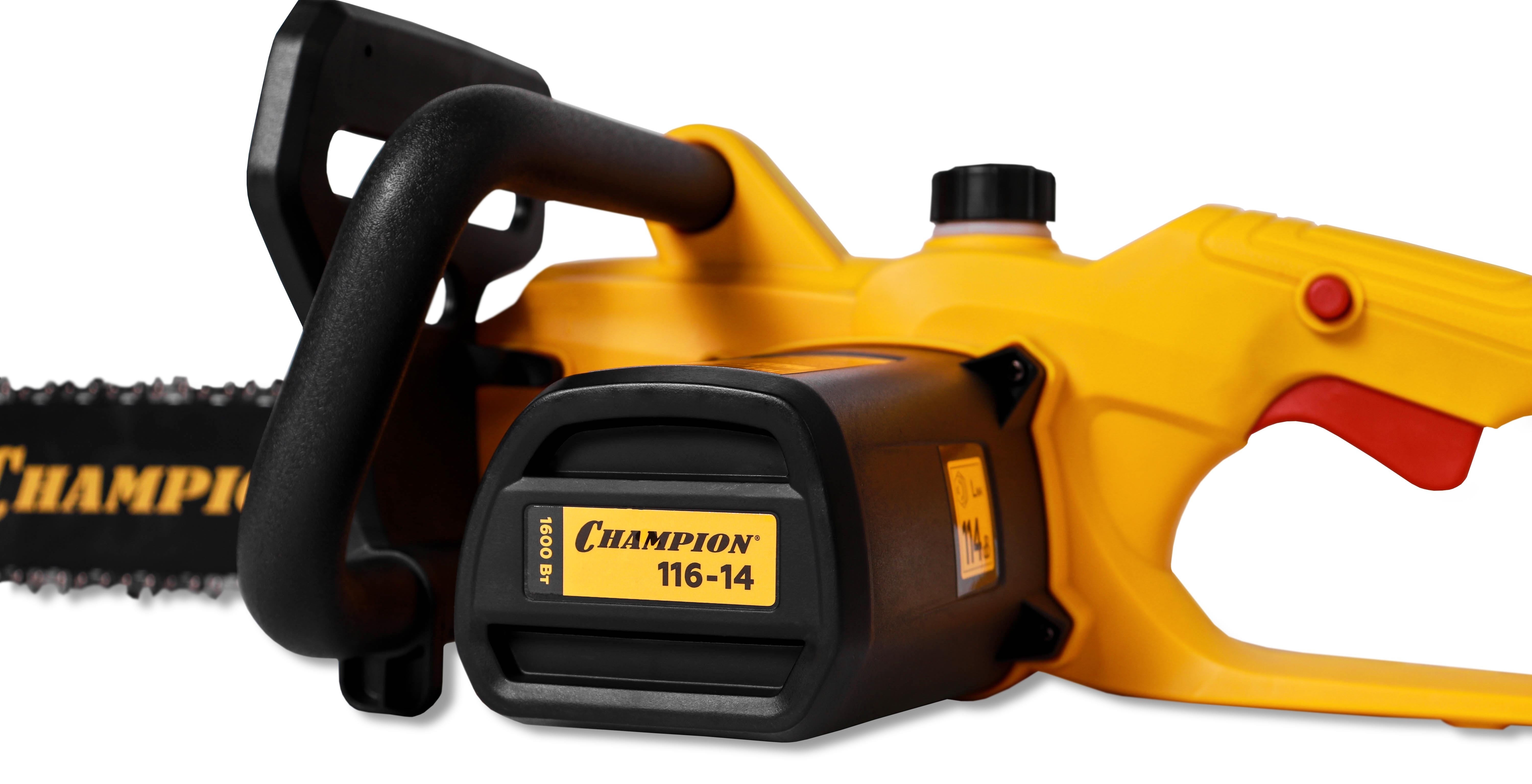Необходим мощный инструмент для работы с древесиной? Электропила Champion 116-14» с двигателем 1600 Вт обеспечивает эффективную валку леса и распиловку заготовок. Отсутствие выхлопных газов позволяет использовать оборудование в закрытых пространствах без риска для здоровья.