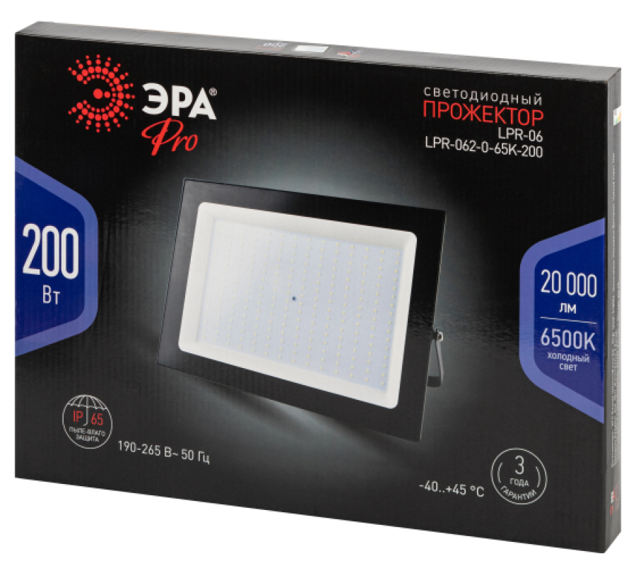 Основные характеристики прожектора для дома и улицы ЭРА PRO LPR-062-0-65K-200: