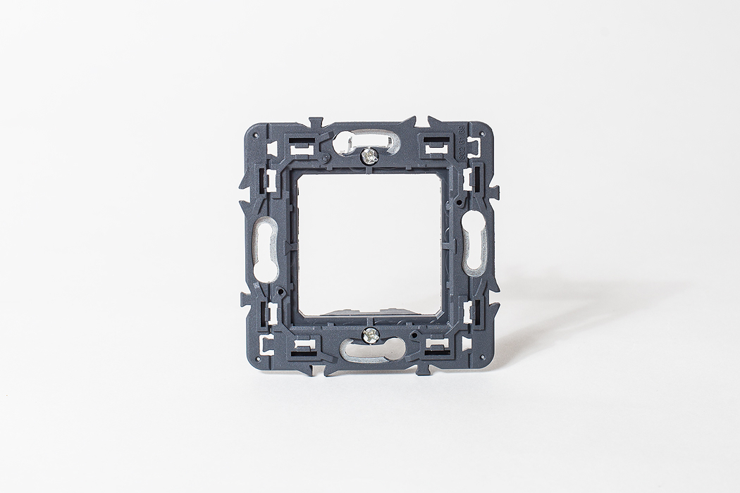 Суппорт на 1 пост (45×45) предназначен для монтажа электроустановочных изделий евростандарта 45×45 в стену.