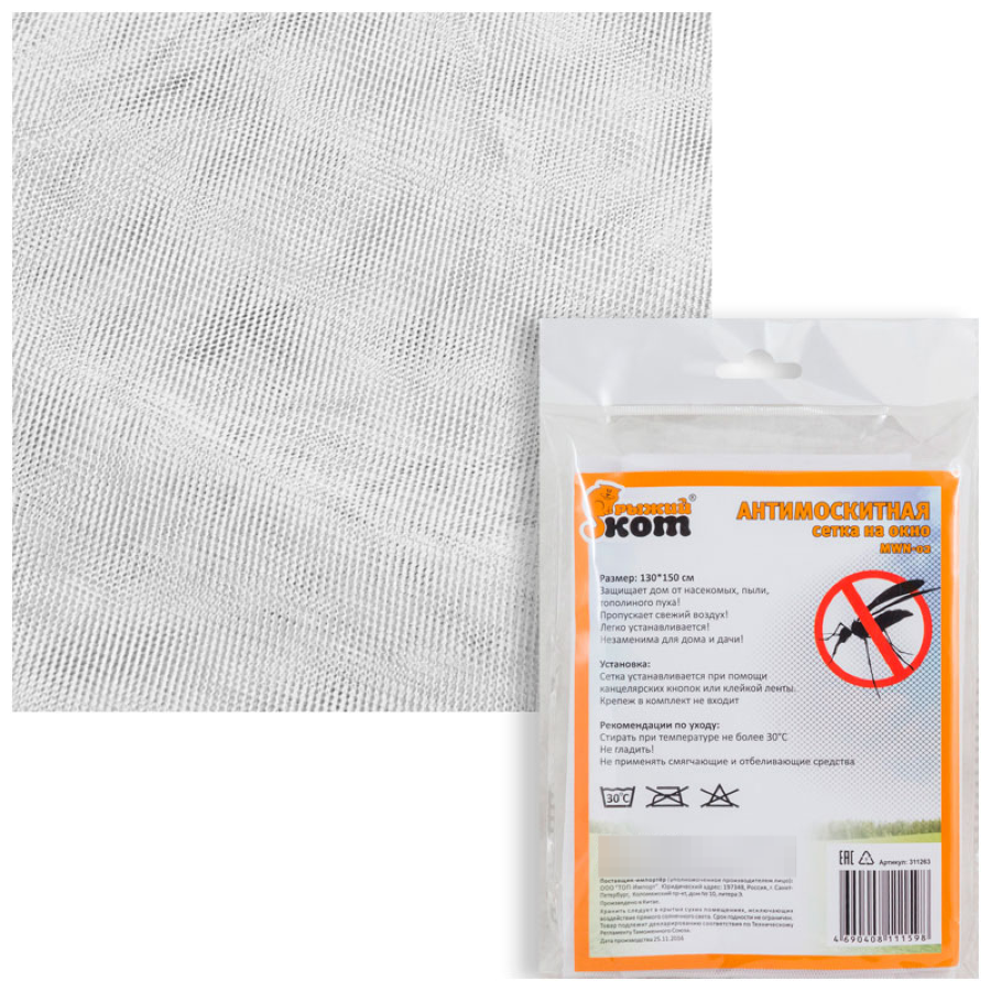 Ищете надежную защиту от насекомых? Сетка москитная Рыжий кот MWN-02 размера 130×150 см создает эффективный барьер против комаров, мошек и тополиного пуха.