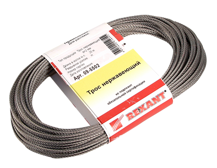 Трос изготовлен из высококачественной нержавеющей проволоки, что обеспечивает устойчивость к коррозии и внешним воздействиям окружающей среды, а также позволяет использовать его в агрессивных средах.