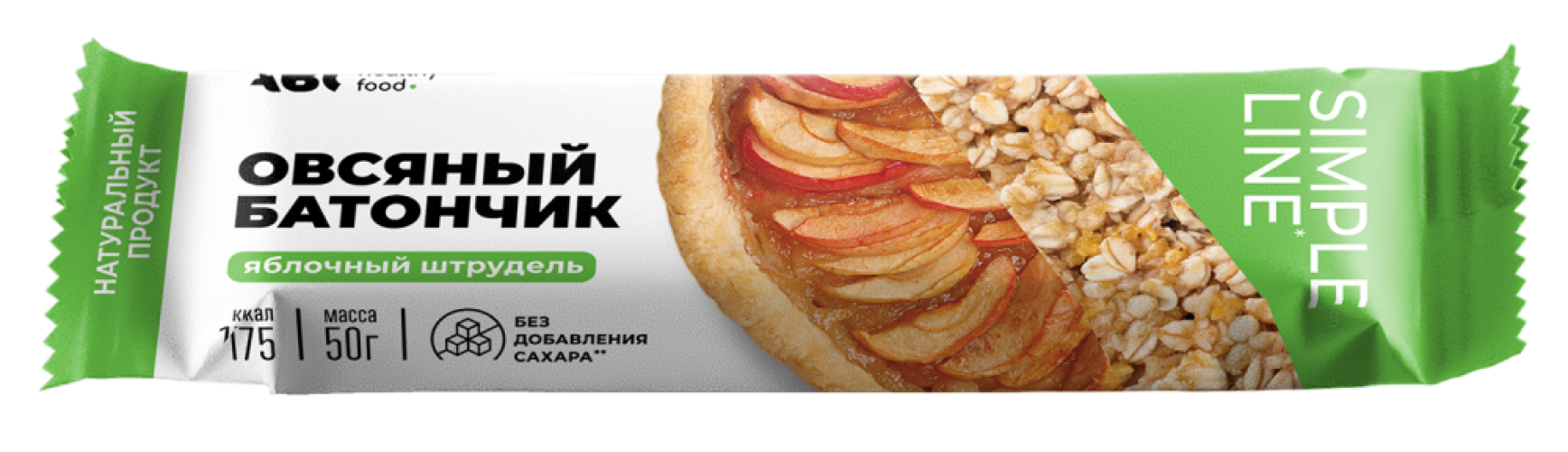 Батончик реализуется в индивидуальной упаковке. В его составе содержатся следующие компоненты: овсяные хлопья, подсластители: мальтитный сироп, изомальт; жир растительный (соевое масло), яблоки сушеные, корица молотая. Вес — 50 г.
