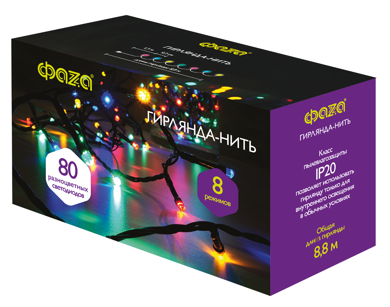 Гирлянда Фаzа AC-G02-80M является отличным вариантом для украшения помещений на новогодние праздники, который создаст уют и радостную атмосферу в вашем доме!