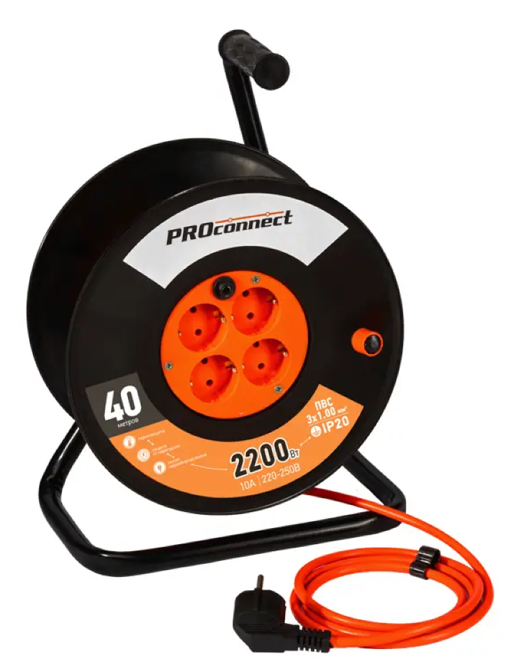 Случаются ситуации, когда нужен доступ к электросети, а она не находится рядом. В такие моменты придет на помощь удлинитель PROconnect на катушке. Он поможет подключить к питанию любой электроприбор, если его использование осуществляется вдали от стационарной розетки.