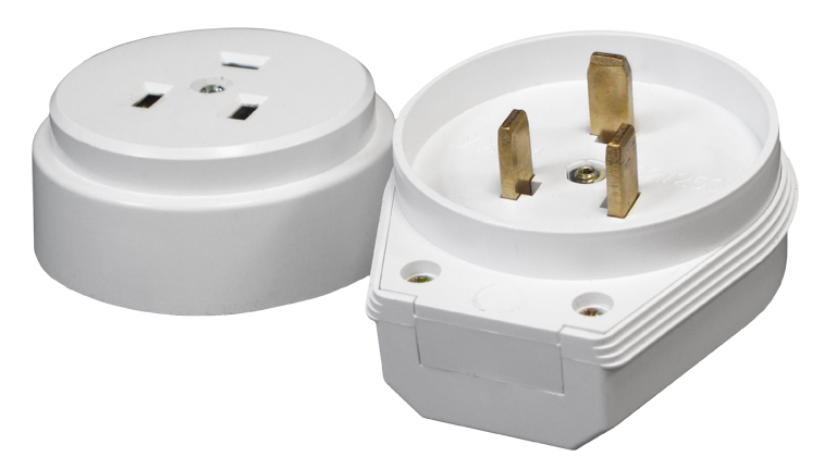 Состоит из двух силовых приспособлений открытой установки — штепсельной розетки и штепсельной вилки.