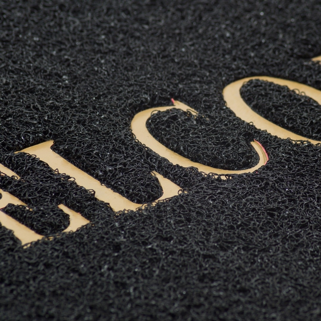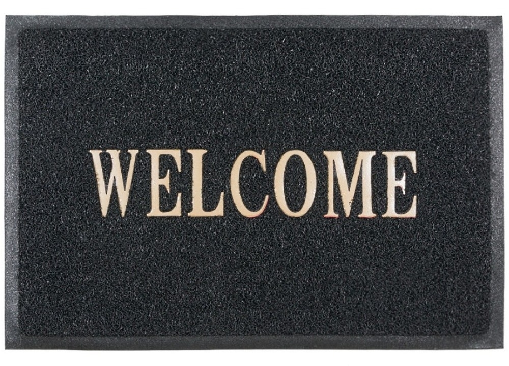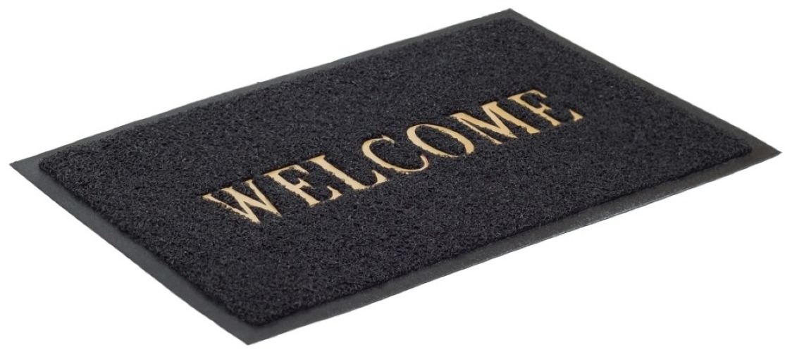 Придверный коврик Welcome из коллекции Spongy в черном цвете, размер 60*40 см. Предназначен для защиты от грязи помещений с небольшой и средней проходимостью. Материал ПВХ. Резиновая основа предотвращает скольжение по гладкой поверхности и обеспечивает надежную фиксацию. Пористая структура эффективно удаляет грязь с подошвы обуви.